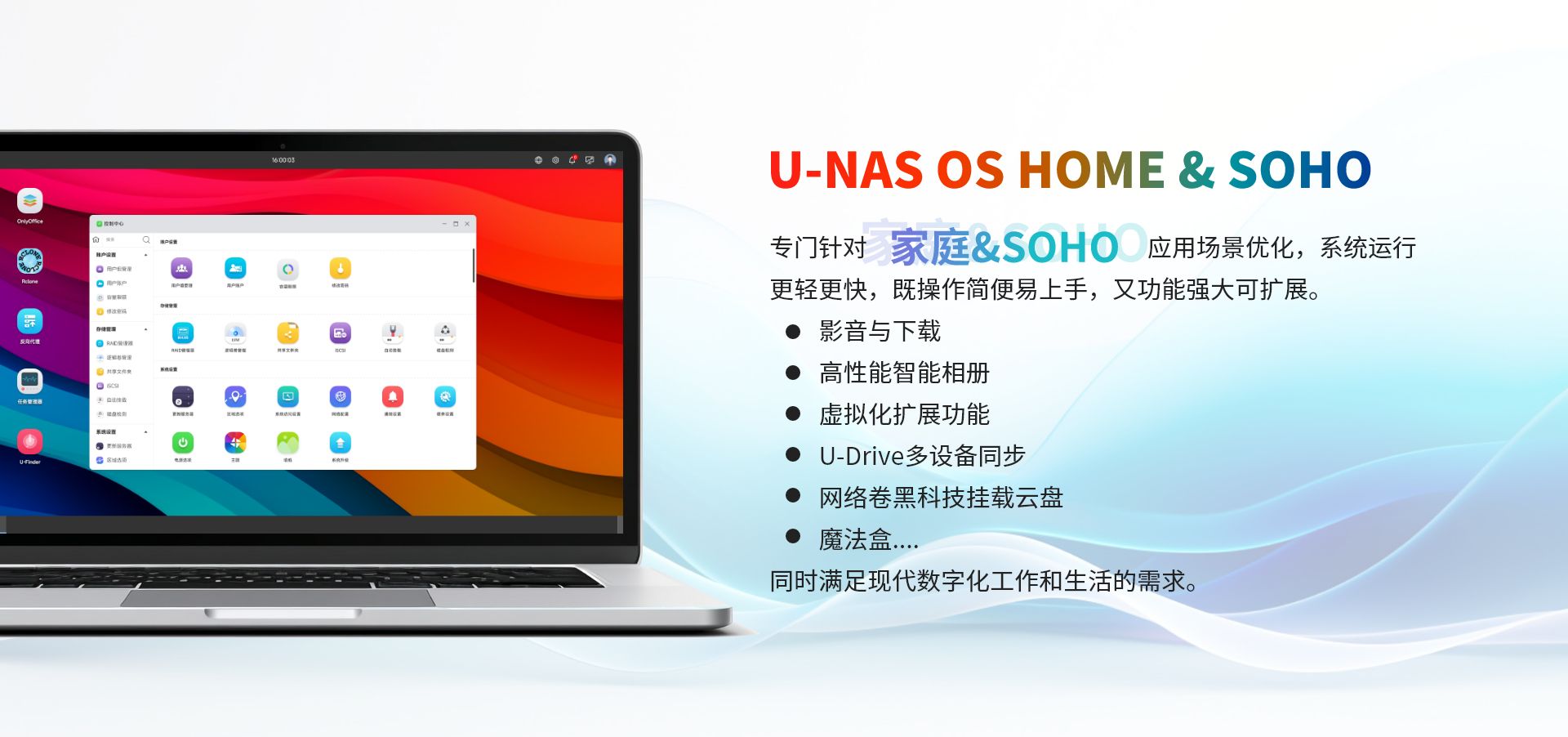 基于萬由U-NAS OS 體系的存儲、備份、私有云服務(wù)的一體化平臺,為企業(yè)提供一套安全、高性能、彈性可擴(kuò)展的一體化數(shù)據(jù)統(tǒng)一管理、主動備份和數(shù)據(jù)在不同地區(qū)、不同設(shè)備同步的解決方案。并提供個性化的定制服務(wù),使企業(yè)的TOC(總體擁有成本)最低